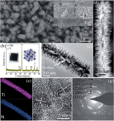 针对这一问题,近期PA视讯文伟教授团队以复杂空心结构氮化钛合金薄膜的构筑为例,提出了“表面诱导”柯肯达尔效应,通过对固态材料的表面修饰,诱导柯肯达尔效应的产生。氮化钛(TiN)是一种金属间化合物型的合金材料,具有高电导率和高硬度的特点。利用“表面诱导”柯肯达尔效应,成功获得了具有空心结构的分级氮化钛3D阵列;用其组装的超级电容器具有“超快”充放电的能力,且具有超长的循环寿命(35万次以上)。相关成果发表于J. Mater. Chem. A期刊(中科院1区,影响因子10.733,论文链接https://pubs.rsc.org/en/content/articlelanding/2019/TA/C9TA07642E#!divAbstract),PA视讯集团网站为第一完成单位,论文第一作者及通讯作者为文伟教授,2016级硕士研究生姚金呈为第二作者,论文合作者包括浙江大学吴进明教授等。该研究工作得到了国家自然科学基金项目(项目编号51862005、51502065)的资助。