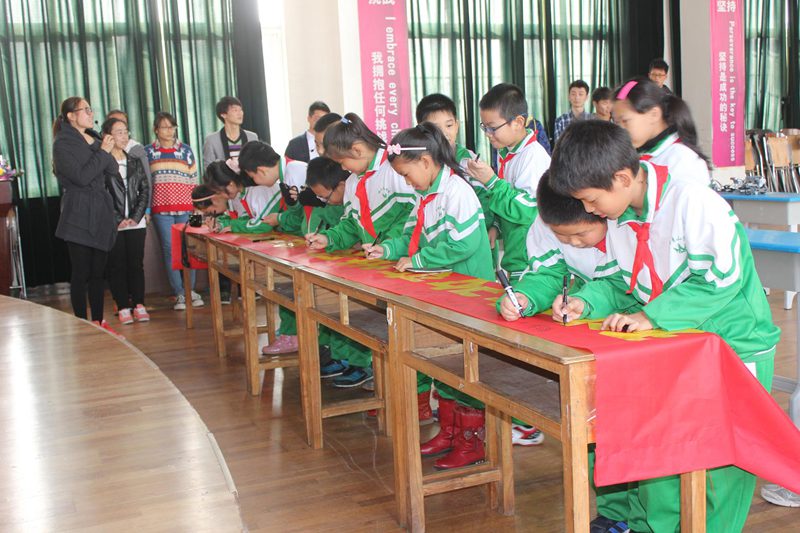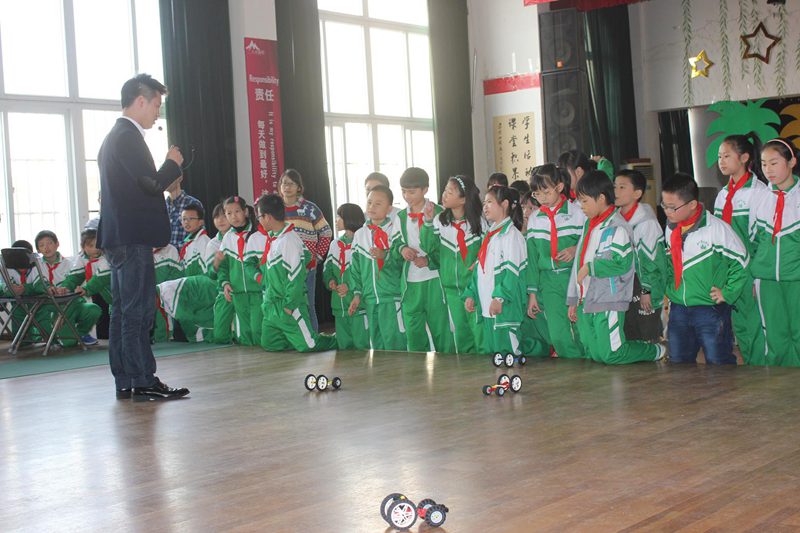 活动开始,由主持人施艺向小学生们讲述本次活动的基本要求,并宣布本次活动正式开始; 随后,在景山分校老师的协助下,将学生分为10组,每组由5名同学组成,在主持人的引领下,有序地在主题条幅上签字;然后,科技梦想服务团成员每人带领一小组同学们,为同学们讲解机器人相关知识及操作过程中的注意事项,并指导同学们自行进行机器人的简单组装。所有的小学生们都非常认真的学习,并投入到动手实践中,直到自己亲手组合成功。