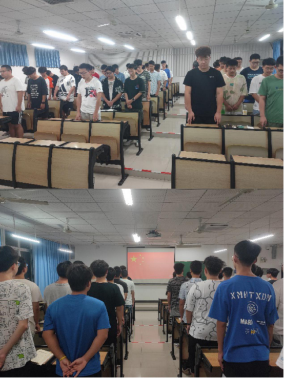 会议开始前,全体成员为九一八事变中逝去的中国同胞肃立低头默哀,默哀的场面庄严肃穆,表达我们缅怀同胞 ,吾辈自强的信念。默哀完毕,“致敬抗日战争胜利”分享会在庄严的国歌中拉开序幕。