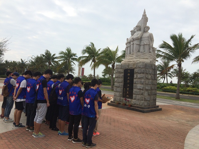 净滩活动结束后,全体成员在白沙门英雄纪念碑前缅怀为解放海南岛而牺牲的革命先烈。
