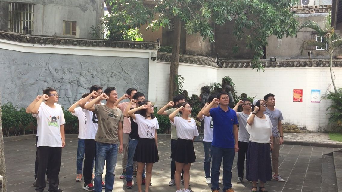 吴林萍同志首先代表机械系学生党支部在这举国欢腾的日子里对祖国送上真诚的问候和最美好的祝福。吴林萍同志表示在这特殊的日子里、特殊的地方上党课,与各位党员共同回顾“孤岛奋战艰苦卓绝、二十三年红旗不倒”的琼崖红色传奇历史、回顾党的十八大以来的海南岛建设的各种瞩目成就、喜迎即将召开的党的十九大,对支部党员具有很强的红色意义,有助基层党组织建设成为教育党员的学校、团结群众的核心、攻坚克难的堡垒。