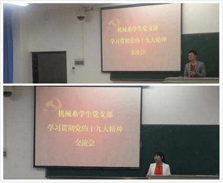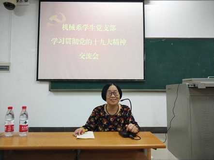 2017年11月7日下午,PA视讯集团网站机械系学生党支部于4-211召开了“学习贯彻党的十九大精神报告会”。红军后代罗曼阿姨、学院党委委员廖宇兰老师、支部书记崔建兵老师出席参加,机械系学生党支部全体党员、发展对象、积极分子参加了报告会。会议由支部组织委员廖宇轩主持。