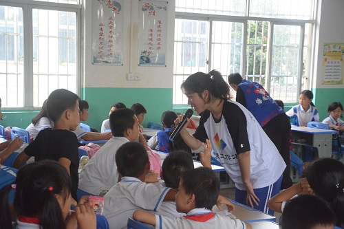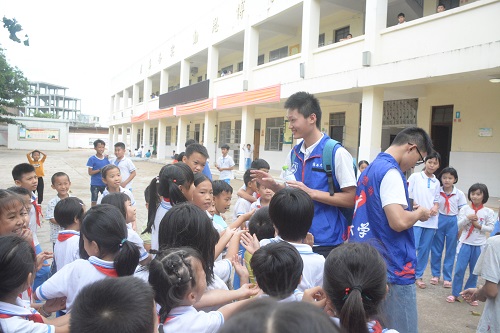 志愿者们带来糖果分享给孩子们,肯定孩子们的良好表现。最后,志愿者们表演了话剧《鸟笼》,通过生动精彩的表演向孩子们展示了心理暗示对人行为的影响,在带给孩子们欢声笑语的同时也给孩子们传授了知识。课后,通过与学校老师的交谈,志愿者们了解到了大林小学有很多留守儿童,平时父母的陪伴比较少,缺少亲情的关怀。这更加坚定了志愿者们为这些儿童提供心理辅导和继续开展支教活动的坚定信念。