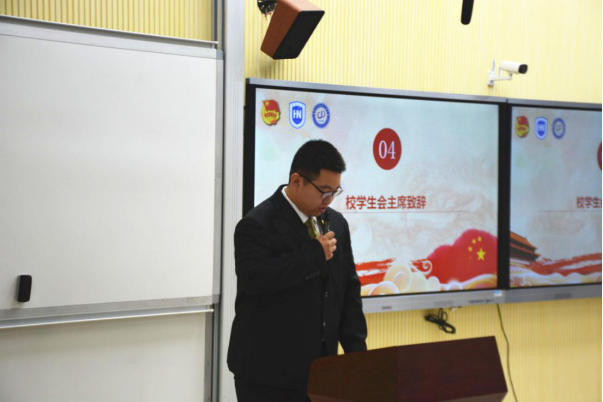 校学生会副主席刘崇同学代表校级组织发言,他对大会的召开表示热烈祝贺,对出席大会的全体团员代表、学生代表致以诚挚问候。他希望今后在校党委领导、校团委指导下,PA视讯集团网站团委学生会的工作能更加出彩夺目。