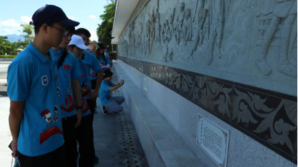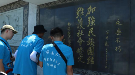 上午10点30分,调研团抵达白沙起义纪念园。记录着革命历史的石碑将白沙起义纪念园包围了起来,精巧生动的石雕和严肃工整的文字为所有人还原了白沙起义事件的全过程。白沙起义事件发生于二十世纪四十年代,它唤起了黎族苗族人民的新觉醒,极大地推动了黎族苗族地区社会的发展,对海南岛抗日战争和解放战争的胜利起到重要作用,具有深远的历史意义。在抗战过程中,英烈们以敢于反抗强暴、争取民主自由的斗争精神,为海南的解放立下了不可磨灭的伟大功勋。高耸雄伟的白沙起义烈士纪念碑上记载着江泽民同志写给烈士们的亲笔题词——“白沙起义的英烈们永垂不朽”,石碑上深深刻印的文字每时每刻都提醒着人们黎苗两族人民在中国共产党的领导下,于逆境中艰难前进并最终获得胜利的历史事件。