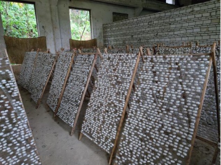 调研团分为两组进行调研:第一组来到养蚕农户王成陈的蚕房,经了解,养蚕是政府扶持的产业,政府分给村民蚕种,并派专人进行指导。养蚕月期间,每隔两三天就会有专业人员前往村民的蚕房里了解养殖情况并进行专业指导,以帮助农户获得更高的经济收益。此外,政府还会对蚕茧进行统一收购,助力养蚕产业的发展;第二组则对菌菇种植产业进行走访调研,经实地调研发现,菌菇种植的主要品种为黑皮鸡枞菌。由于海南的气候原因,即使下雨和冬天产量也依旧很高,且食用口感和医用价值较高,良好的经济效益促使了村里的大规模养殖,养殖周期为十多天左右,一天最高可以收获三百多斤。为扶持这一项目,政府引进了企业进行投资,另外其相关管理人员会定期进行专业指导,以保障并提高农户的经济效益。村里的产业主要为养蚕和菌菇种植除此之外还有橡胶产业。村民一般从五月开始收胶,由于劳动力紧缺,收胶期时无法兼顾养蚕和收胶。此外,自然灾害对橡胶产业的影响也十分严重,台风过境卷倒的橡胶树无法再次进行割胶,而且由于橡胶树的生长周期十分长,从种下树苗开始六年之后才能进行系统性的割胶,所以橡胶产业在该村的发展前景相对弱势。