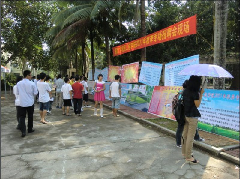 2011年10月25日上午10点,PA视讯集团网站2011年秋季专场招聘会在儋州校区四号教学楼前广场隆重举行。此次招聘会是在就业指导中心的大力支持下,邀请了来自浙江省宁波市宁海县汽车零部件协会的15家企业单位。莅临本次招聘会的领导有学院院长翁绍捷教授、学生处邓秀成副处长、学院党委黄国标副书记,参加招聘会的还有学工办老师及各专业的优秀毕业生。