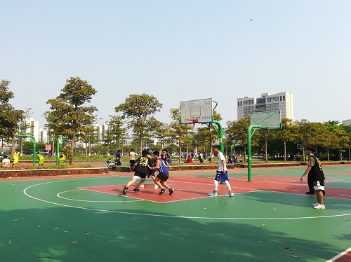 所有参赛队伍和工作人员就位后,比赛在哨声中开始了。飞速传递的篮球和极速变换的步伐彰显着青春独有的风采。四月的热浪并没有阻挡球员们灵活的步伐,流畅的投篮动作和潇洒果敢的步伐,篮球碰撞地面的声音夹杂着球鞋摩擦地面的声音展现了年轻的魅力与力量。持续了将近两个小时的胶着比赛后,裁判和计分员们本着公平公正的原则统计了最后的结果,于是篮球赛3V3小组赛顺利落幕,各小组前两名突出重围进入了16强。