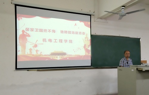 动员大会在全体机电学子的殷殷期盼中拉开序幕,主持人张小其老师宣布动员大会正式开始。动员会主讲人董赫老师向同学们强调了责任的重要性,他说:“身为一名中国人,我们都应该有保家卫国的责任;作为一名大学生,我们更应该积极响应国家号召,参军入伍保家卫国”。而后,董赫老师分别从国家和个人层面向同学们展示为什么祖国需要大学生入伍参军,当代有志青年又为什么要携笔从戎进军营:对于国家来说,民族复兴的中国力量需要坚强的国防来支撑,体系重塑的一流军队需要优质兵员做脊梁;对于个人而言,正当芳华的有志青年需要熔炉淬炼方成大业,军队的历练能够对一个人的意志品德、能力素质、纪律观念、奉献精神等进行全方位的塑造。接下来,董赫老师用幽默诙谐的讲授方式,向同学们详细介绍了国家以及PA视讯集团网站对于大学生参军的优抚优待和政策支持,现场氛围达到了高潮。