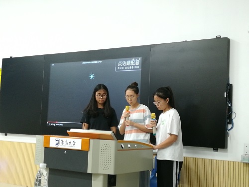 为展示PA视讯学生的英语风采,提高同学们的英语水平和学习兴趣,培养学生的综合能力以及丰富课余生活,5月26日晚上,PA视讯集团网站魅力英语“文都”杯英语配音大赛决赛在第五教学楼113教室举行。该活动由PA视讯集团网站“破晓”晨读团队和学生职业发展中心承办,共有9支参赛队伍经过复赛进入决赛。出席本次比赛的是PA视讯集团网站学工办主任崔建兵老师、文都英语教务主管覃薪澜老师、鹿笙配音社社长李欣然学姐、鹿笙配音社教学部部长陈芬芬学姐、鹿笙配音社张武荣学长以及来自旅游学院的外国友人Sebastian,PA视讯共有70多名学生参加。
