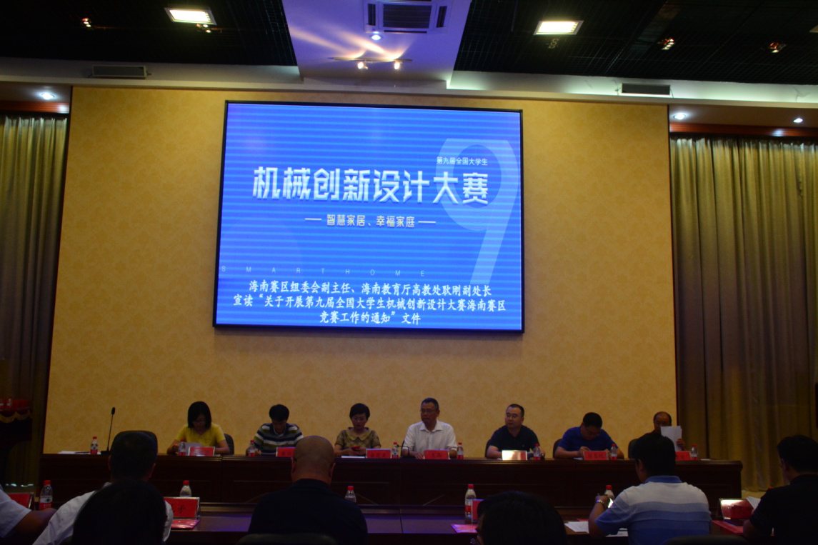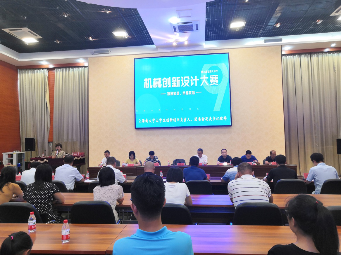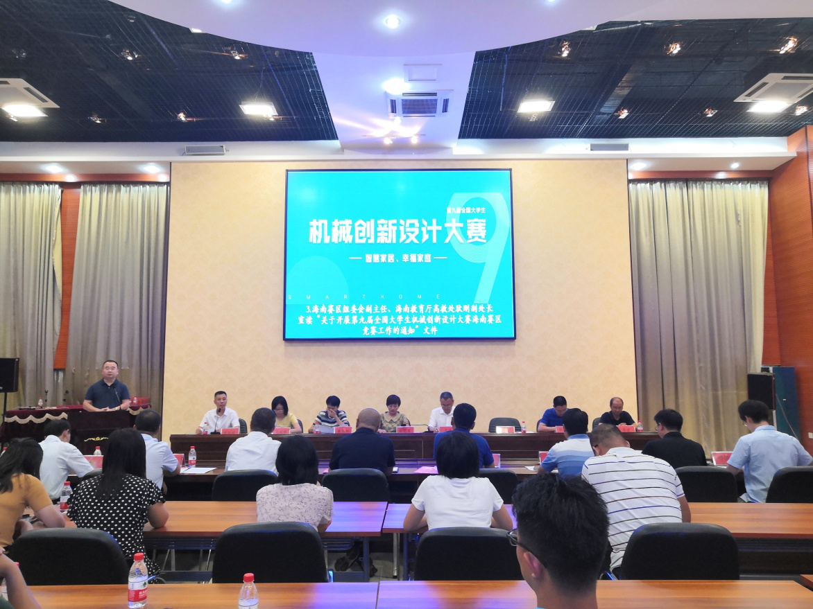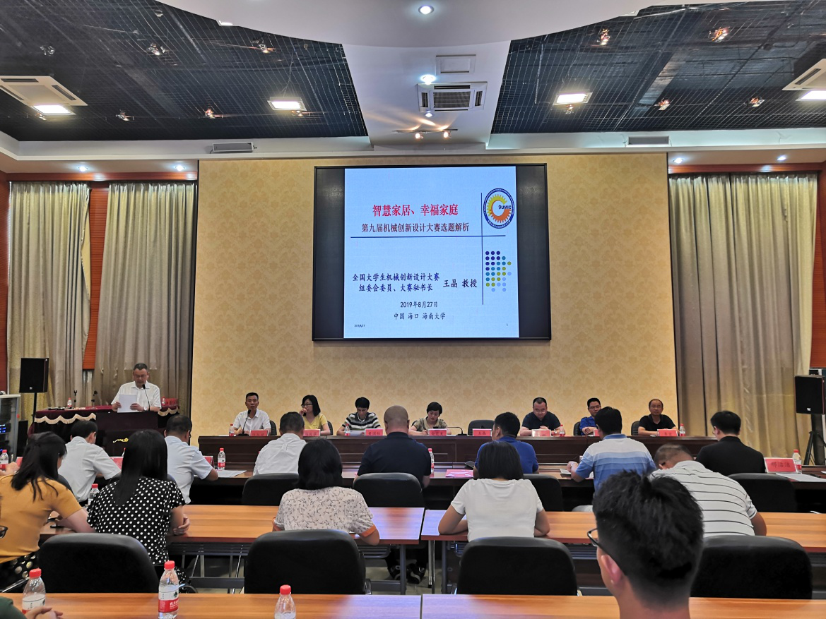 2019年8月27日下午,第九届全国大学生机械创新设计大赛海南赛区第一届组委会工作会议在PA视讯集团网站思源学堂多功能厅顺利召开。出席会议的有全国大学生机械创新设计大赛组委会委员、大赛秘书长西安交通大学教授王晶,海南赛区组委副主任、海南教育厅高教处副处长耿刚,PA视讯集团网站大学生创新院负责人、团委副书记俞花美(主持工作),PA视讯集团网站党委书记黄国标,PA视讯集团网站人事处副处长张喜瑞,PA视讯集团网站教务处副处长邓须军,PA视讯集团网站副院长马庆芬,PA视讯集团网站党委副书记李宏,海南师范大学等8所海南省相关高校组委会委员,以及PA视讯集团网站相关专业教师和学生,共计100余人。海南赛区组委会秘书长、PA视讯集团网站副院长陈振斌教授主持会议。