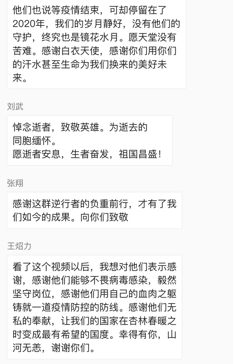 黑暗有多让人咬牙切齿,光明就会多让人热泪盈眶。逝者已矣,生者如斯。对烈士最好的铭记,就是前进。他们用生命铺成的道路,我们有何理由踯躅不前?牺牲的英雄们,愿天堂没有疾病,愿他们的名字永垂不朽。