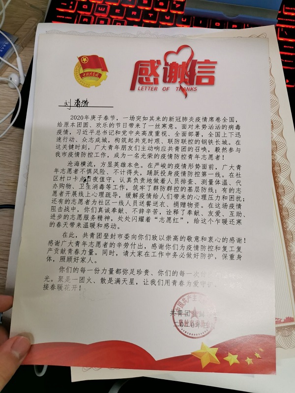 参加防控工作后,我们3名志愿者帮助工人师傅在卡点建起了简陋的帐篷。作为志愿者主要负责白天协助团委领导值班,为社区因私事出入人员填写出入证、检查外出工作人员的工作证明并测量体温。从团委的王书记口中得知,我所在的社区情况十分特殊:有约400户人家、1000余人口,其中有两户人家分别从高风险地区周口与武汉返回;社区靠近妇幼保健院,产妇孕检出入和家人探视十分频繁。疫情防控的前期缺乏经验,难免有些手忙脚乱,尤其是中午时段,厚厚的一本信息登记表短短一中午就见了底。随着疫情防控健康码逐渐推广,志愿者的工作简洁快速有效,但是“出去扫过了为什么回来还要扫码”、“我是老年机,不能扫码”诸如此类的问题仍旧层出不穷,有时虽然向同一个人解释多次,但是还是要耐心向他们讲解、期望他们的配合与支持。