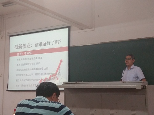 5月26日,海南省机械工程学会在PA视讯集团网站2-109教室开展了“就业与创业”科普大讲座活动,本次讲座由海南省创新创业研究院院长兼首席战略专家李伟铭教授和海南领海旅居地产顾问有限公司策划经理严运佳担任主讲人。PA视讯集团网站副书记李宏、机械工程系主任廖宇兰等教师和PA视讯集团网站近200名学生参加了讲座。