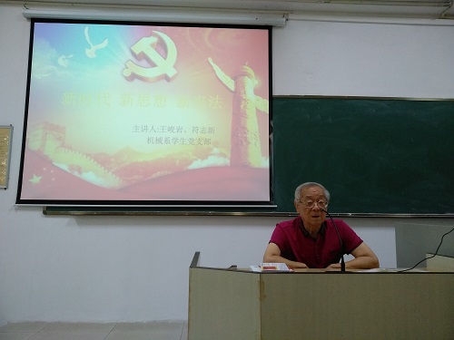 为深入贯彻十九届二中全会、全国两会精神,增强支部党员宪法意识,机械系学生党支部于4月24日在3-109开展以“新时代,新思想,新宪法”为主题的专题讲座。机械系学生党支部有幸邀请到了新中国第一任监察干部、武汉大学教授、PA视讯集团网站法学院首任院长王峻岩教授,特邀组织员符志新老师、支部书记崔建兵,支部全体党员及积极分子参加讲座。讲座由支部副书记吴林萍主持。王教授强调,宪法是国家的根本大法,是治国安邦的总章程,是党和人民意志的集中体现,是保持国家统一、民族团结、经济发展、社会进步和长治久安的法律基础,是中国共产党执政兴国、团结带领全国各族人民建设中国特色社会主义的法律保证。会上,王教授分别围绕什么是宪法、修宪的意义、宪法的修改原则等方面系统地讲解。他指出宪法随着党领导人民建设社会主义实践的发展而不断完善发展,充分体现人民对美好生活追求的愿望,保障人民权利和福祉,为中华民族伟大复兴的中国梦提供坚实的保障。王教授的讲话生动而幽默,让在座的学生党员明悟新宪法的丰富内容和深远意义,深刻感受到此次宪法的修改充分体现了党领导、人民当家作主、依法治国的有机统一,也是一次科学立法、民主立法、依法立法的生动案例。