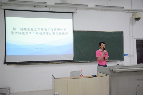5月8日下午,PA视讯集团网站“新工科”建设背景下的教学改革研讨会暨本科教学工作审核预评估整改推进会在3教208教室顺利举行。PA视讯集团网站院长翁绍捷,党委书记黄国标,副院长唐荣年、陈振斌,党委副书记李宏,教研办、学工办和专业教师近60人参加。会议由黄国标主持。