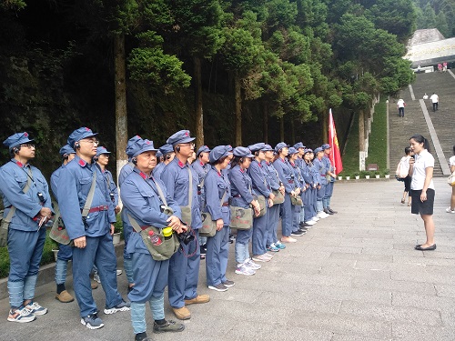 在井冈山革命烈士陵园里,学员在纪念碑前重温了入党誓词,并向在井冈山革命斗争时期献身革命的先烈们敬献花圈。敬献花圈之后顺山往上,先后瞻仰了碑林、纪念碑及雕塑园。从这些题字和雕塑我们仿佛看到了当年革命先烈的音容笑貌和为革命牺牲的大无畏精神,让人油然而生崇敬之情。在井冈山革命博物馆,学员们在教员的带领下,学习回顾了井冈山革命斗争的历史,看着一幅幅生动的历史画面,重温着一篇篇领袖的经典著作,仿佛又回到了那个难忘的岁月,心生感动,无限感慨与震撼。站在黄洋界保卫战胜利纪念碑前,全体学员重读了毛主席的著名诗词《西江月·井冈山》,回忆井冈山?的斗争岁月.1928年8月,在黄洋界成功上演了一场军民联合、巧妙布阵、以少胜多的伟大战斗仿佛又呈现在我们面前.