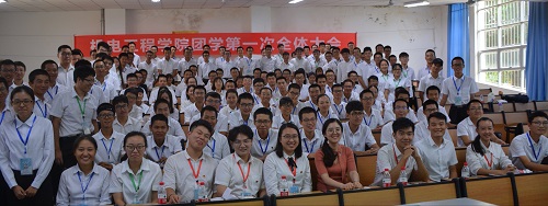 会议伊始,主持人带领全体成员起立奏唱团歌,会议在庄严而神圣的歌声中正式开场。紧接着,袁周米琪老师发表讲话。她首先提出了三个问题:共青团是什么?共青团要做什么?学生干部是什么?接着她就这三个问题展开讲述。她指出共青团不仅仅是活动的组织者,更是思想引领,素质拓展,权益服务,组织提升和品牌活动的综合体,而学生干部则是广大同学的服务者。所以学生干部们要将活动办的有意义,有意思。她还向大家介绍了团委学生会的历史和成绩,加深了大家对团学组织的认知。最后,她表示新一届学生干部能够继续发扬机电团学踏实肯干的精神,作出自己的成绩。
