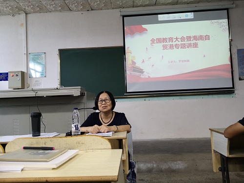 主讲人罗曼阿姨首先带我们回顾了全国教育大会。罗曼阿姨强调,要充分认识全国教育大会的重大意义,深入学习领会习近平总书记关于教育的重要论述,深入理解和把握坚持党对教育事业的全面领导,坚持把立德树人作为根本任务,坚持优先发展教育事业,坚持社会主义办学方向,坚持扎根中国大地办教育,坚持以人民为中心发展教育,坚持深化教育改革创新,坚持把服务中华民族伟大复兴作为教育的重要使命,坚持把教师队伍建设作为基础工作。她结合自身经历,分享了自己学习感悟,指出教育是民族振兴,社会进步的重要基石,号召大学生要自觉接受教育,争做无产阶级的接班人,切忌做“精致的利己主义者”、“高学历的野蛮人”。随后,罗曼阿姨又为我们普及了自贸港方面的知识及相关政策,使大家了解到国家对于海南逐步探索、稳步推进中国特色自由贸易港建设的支持。呼吁我们在未来学成归来后,为海南建设自贸港贡献出自己的一份力量。