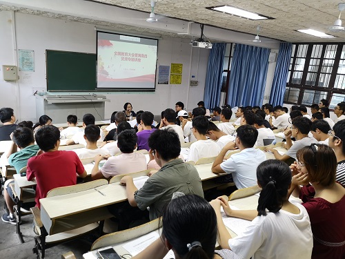 2018年11月3日,机械系学生党支部学习贯彻全国教育大会精神暨海南自贸港专题讲座在1-203教室召开。支部书记崔建兵,党员、积极分子约100余人共同参与。讲座由宣传委员周和媛主持。