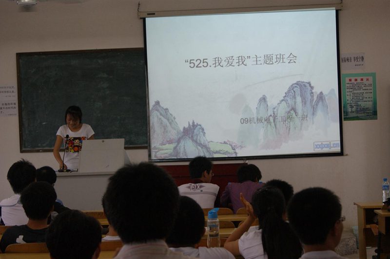 为迎接PA视讯集团网站2011年“525我爱我”大学生心理健康教育活动月,09机械电子工程1班于2011年5月16日下午2:30在3404课室开展了形式多样、内容丰富的心理班会。会上还特邀请了班主任梁栋老师和辅导员崔建兵老师。 本次班会的主题是:“展现自我,拥抱自信”。班会依次分为四个环节:各宿舍展示ppt;“夸夸人”互动游戏;大家讲讲心里话;观看自制的09机械电子工程1班成长录并合唱歌曲。