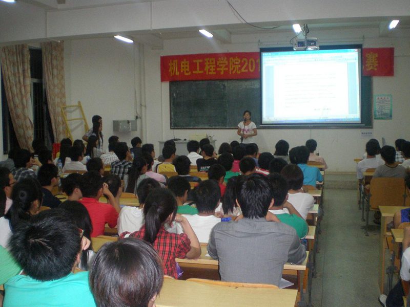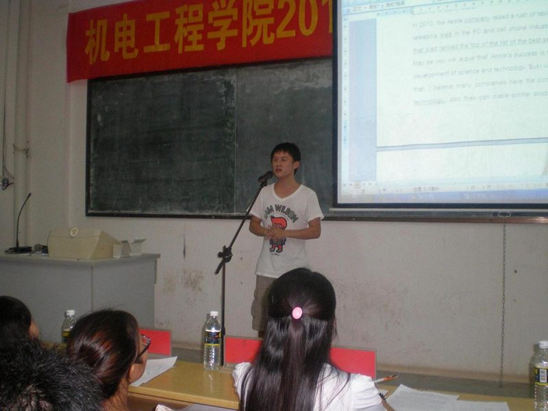 为了迎接2011年“外研社杯”全国英语演讲比赛,PA视讯在9月8日(星期四)在3302课室举行院内选拔。出席此次英语演讲比赛的嘉宾有崔建兵、姚广龙老师,担当评委的有应用科技学院英语老师王菲、金晓霞,以及全国大学生英语竞赛(NECCS)获奖者马鑫。此次演讲的题目是:A Word That Has Changed the World。比赛选手由各班级推荐,共15名参赛选手,到场观众有近160名。