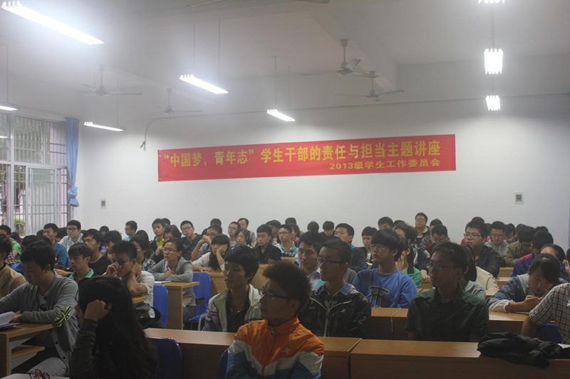 程儒参同志首先对同学们的热烈欢迎表示感谢。他说,学生干部作为教师与学生的桥梁具有双重属性,既是学院老师的好帮手,又是学生中的骨干、标杆、楷模与精英,这双重身份就决定了付出的同时也会有收获。学生干部在此锻炼平台上收获的组织协调、沟通表达等能力在跨入社会的第一步将会有明显优势。针对好干部的培养问题,他从以下五个方面给出建议:一是崇德修身。做人为先,立德为本;与人为善,助人为乐。正如古语所云:“修身,齐家,治国,平天下”,要时刻保持谦卑,注重自身德行品质;二是关心政治。思维与国民利益紧密联系,与党中央保持一致,避免偏激,在突发事件中免于立场上倾斜犯错的问题。三是起带头羊作用。适当为自己加压,利益之前带头谦让;四是讲究工作方法。抓重点,效率办事,如在语言表达上要精炼而不乏幽默,主要从做什么、为什么和怎么做三方面进行表达;五是正确处理学习与工作的关系。“非学不以广才,非志不以成学”,始终以学业为首,在此基础上处理工作事宜。他还强调了创新意识在现今结构调整、观念转变的背景下成为德才兼备之才的重要性。
