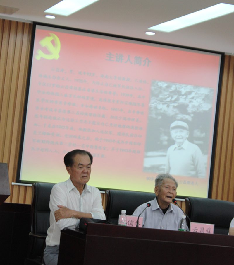程儒参教授发表讲话,语言铿锵有力,情绪义愤填膺。他说,日本在中华民族所犯的滔天罪行给国民带来了沉重的灾难,南京大屠杀以及“三光”政策的血腥场景历历在目。得益于中国共产党中流砥柱的作用力,抗日民族统一战线的组成以及舍身为国的勇气与精神,最终赢取了抗日战争的胜利。他借用习近平总书记“忘记历史就意味着背叛,否认罪责就意味着重犯”这句话告诫当代大学生,勿忘历史,奋发图强,弘扬爱国主义精神。讲座因云昌舜讲述个人抗战故事而升华,虽已年迈渐高但满腔爱国热情依旧不减,与学生们分享当年抗战时期弃笔从戎的经历。通过讲述姐姐惨遭日寇毒害以及当年坎坷的磨难岁月,学生们感同身受,对当年历史以及中国国难有了更为切实的认识。他还告诫我们当代青年学生,一定要扛起中华民族的脊梁,勿忘国耻,力争为振兴中华添锦献力。