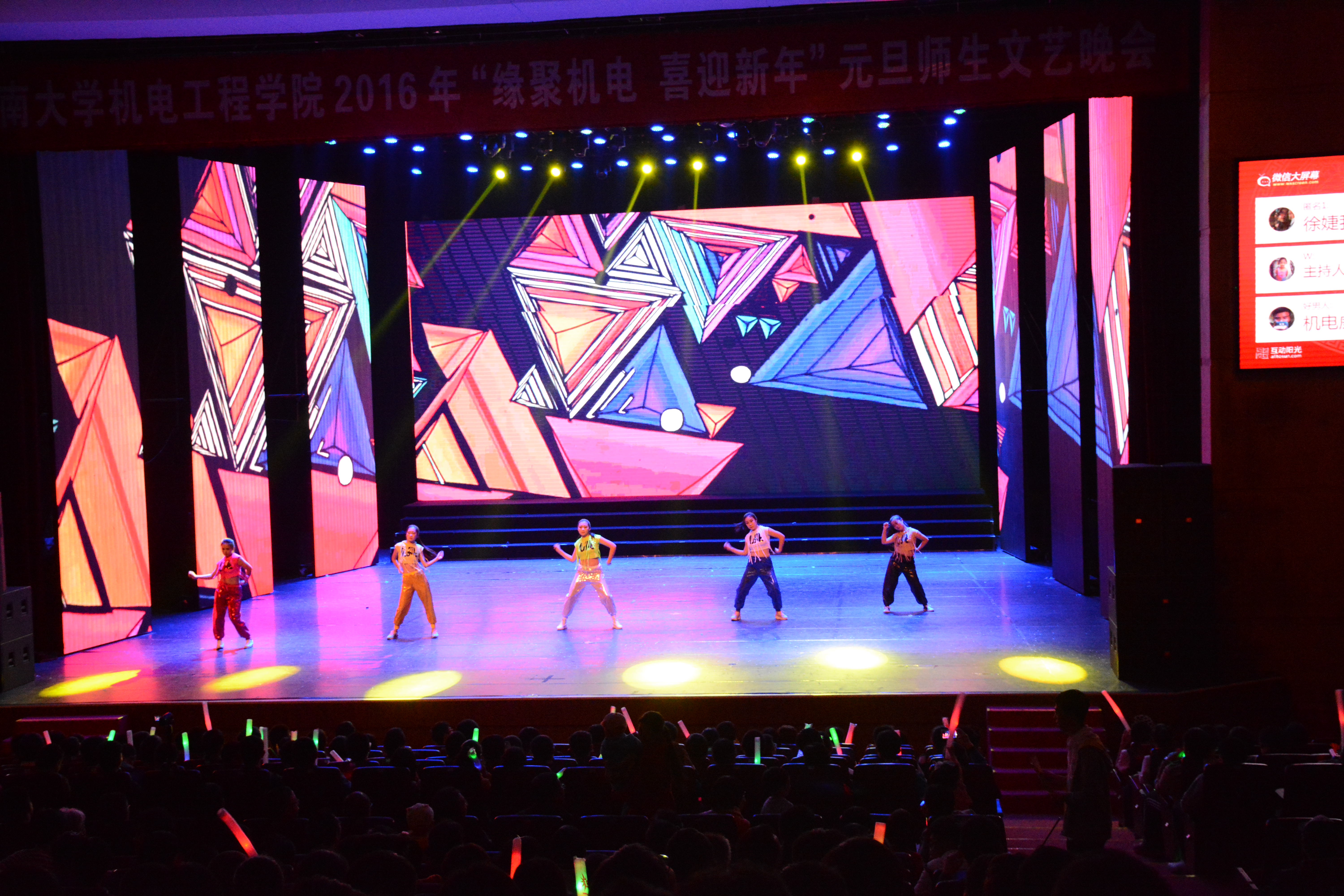 2015年12月31日晚,PA视讯集团网站师生欢聚思源学堂大礼堂,共赏多彩师生元旦文艺晚会。学院院长翁绍捷、党委书记黄国标、副书记李宏等领导出席本次晚会,学院老师及家属同近千名学生欣赏了本次晚会。