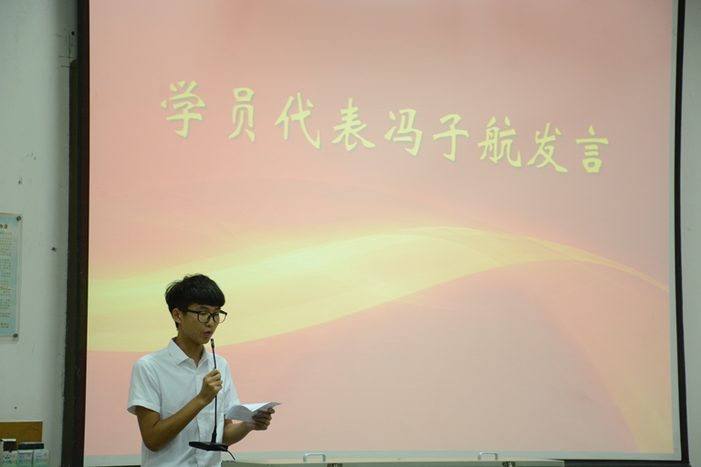 开营仪式在庄严的国歌中开始。首先由黄国标书记致辞,他指出学生干部首先应该具有政治意识、大局意识、核心意识、看齐意识;其次应该严格要求自己,做同学当中的示范者、引领者、带动着;第三,学生干部应该具备高度的责任心,关心学院和同学发展,助力民族和国家复兴。