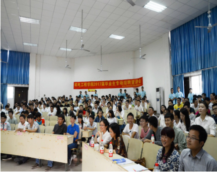为切实加强PA视讯与用人单位的交流沟通,更好地为毕业生与用人单位搭建双向选择的平台,2016年11月5日上午8:30,PA视讯集团网站2017届毕业生专场招聘宣讲会在2教108成功举办。出席招聘宣讲会的有PA视讯党委书记黄国标、副院长唐荣年、学工办主任崔建兵,8家用人单位人事部主要负责人,2017届毕业生及机电职协全体人员300余人参加。