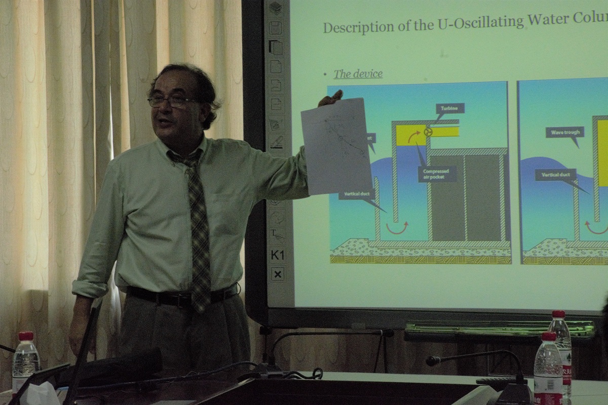 马庆芬副院长对Pol D. Spanos教授的到来表示欢迎,并用英文从历史沿革、师资结构、学生培养、对外交流与合作、科学研究等方面介绍PA视讯集团网站。随后,Spanos教授对非线性随机振动分析理论进行了深入的剖析,细致地介绍了非线性随机振动分析技术在机械工程、航天工程、车辆工程、控制工程、材料工程等领域的应用前景,尤其以振荡水柱岸式波浪能发电系统中波浪能采集的结构参数优化为例,具体介绍了该项技术的应用过程和效果。讲座中Prof.Pol D.Spanos儒雅的气度,严谨的论证,风趣的语言激发了师生们的兴趣,参会师生踊跃提问,与Spanos教授开展了热烈的互动与讨论,学术交流气氛活跃。