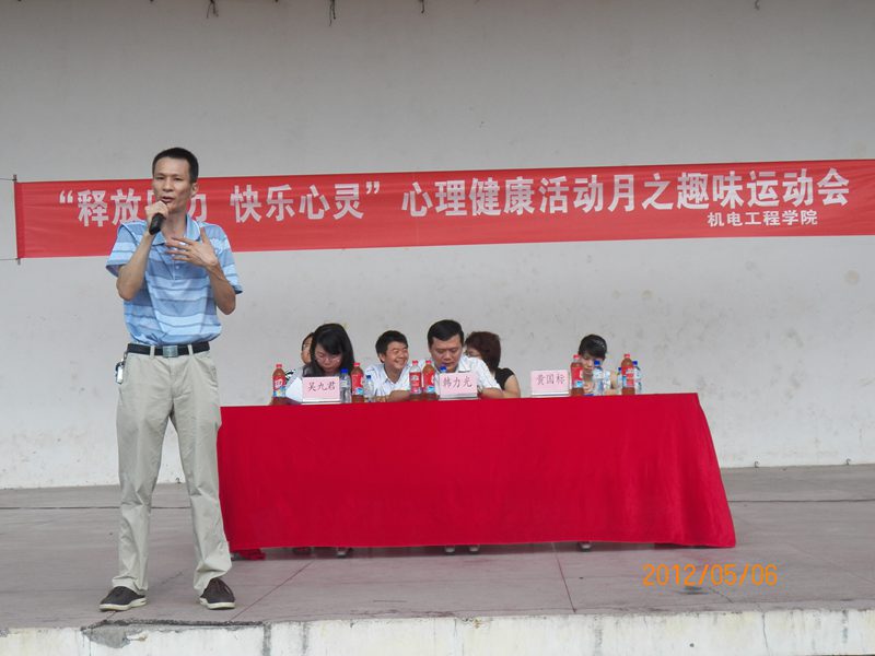 为了焕发同学们的运动激情,塑造一颗健康的心灵,构建一个和谐的校园。PA视讯集团网站在这个阳光灿烂的五月迎来了心理嘉年华趣味运动会暨心理健康活动月开幕式。出席本次心理嘉年华趣味运动会的嘉宾有:学生处韩力光副处长,学生处心理健康教育指导中心吴九君博士,院党委黄国标副书记,学工办主任陈秀妍老师,何映敏、崔建兵、姚广龙老师以及PA视讯集团网站2010级和2011级全体学生。