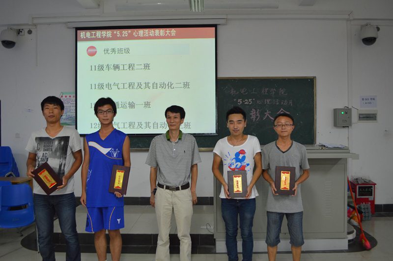 2013年6月7日下午4:40,PA视讯集团网站2013年5•25心理健康宣传月表彰大会在4教103教室拉开帷。PA视讯集团网站党委黄国标副书记,学工办主任陈秀妍老师,辅导员何映敏、崔万春、崔建兵老师,以及在本次活动中获得表彰的先进班级和个人出席表彰大会,来自各班级班长和心理委员近百名学生参加了本次表彰会。
