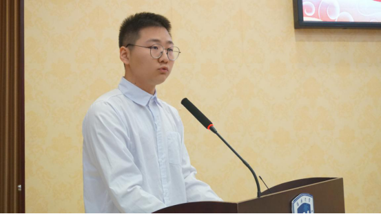 大会第四项先由致远五期18级代表刘子墨发言,在发言中着重强调了传承的作用。由于疫情的影响,五期的选拔比以往晚了一个学期,但是正因为有着学长学姐们的引领,五期学子能够更快的融入致远班。他还简单分享了暑期社会实践的一些趣闻,让大家能够生动形象地了解致远班的精神风貌。