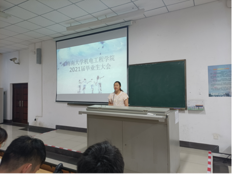首先,黄国标书记为2021届毕业生们送上毕业寄语,他殷切嘱托同学们要时刻牢记“海纳百川,大道致远”的校训,继承机电学院优良传统;离校时要为学弟学妹们树立榜样,做到文明离校、安全离校;希望同学们在未来的日子里,无论是走向社会贡献祖国,还是继续求学孜孜以求,始终保持积极的心态迎接各种挑战,不怕苦不怕难,坦然面对种种挫折。毕业后常回母校看看,母校的大门永远向大家敞开。