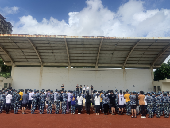 到达训练场后,学院各位老师向带训辅导员详细询问训练情况,并对学生身体状态、心理变化以及入学后的住宿、就餐情况等问题进行详细了解,表示有任何问题或困难可随时向学院老师们寻求帮助。随后,黄国标书记表达了对新生刻苦训练、展现良好风貌的肯定,并勉励新生要努力学习专业技能、接触交叉学科、加强知识积累,鼓励大家要在新环境中互帮互助,锤炼本领,勇于担当,在大学里谱写人生新篇章,为学院和学校发展增光添彩。