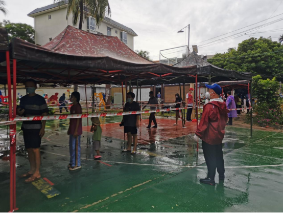 抵达三亚市海棠区东溪村后,张志富老师深入了解全村人员情况及防疫现状,制定详细的工作计划。根据分工,他负责协助属地政府布置核酸采样场地和组织村民开展核酸采样等相关工作。此外,张志富老师与队友全力承担村民的物资保障工作,提前与保供点对接,并统计出村民次日的物资需求清单,预约物资配送;而后依次完成物资提取、分类、清点、复称等工序,逐一分发到户,努力做到让村民“家中有粮,心中不慌”,更好地支持全村抗疫工作。
