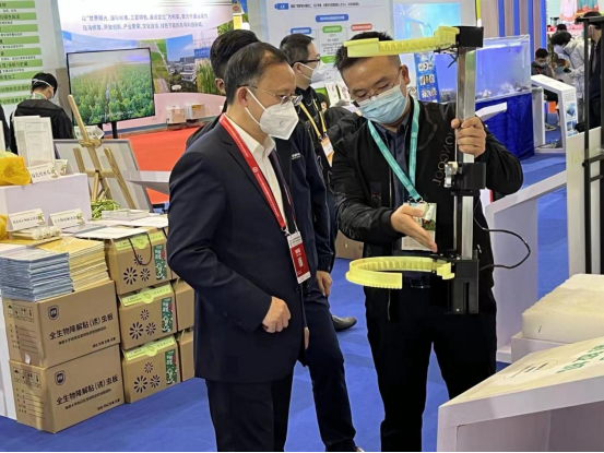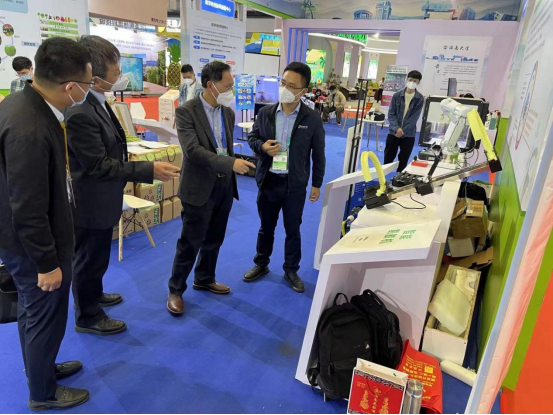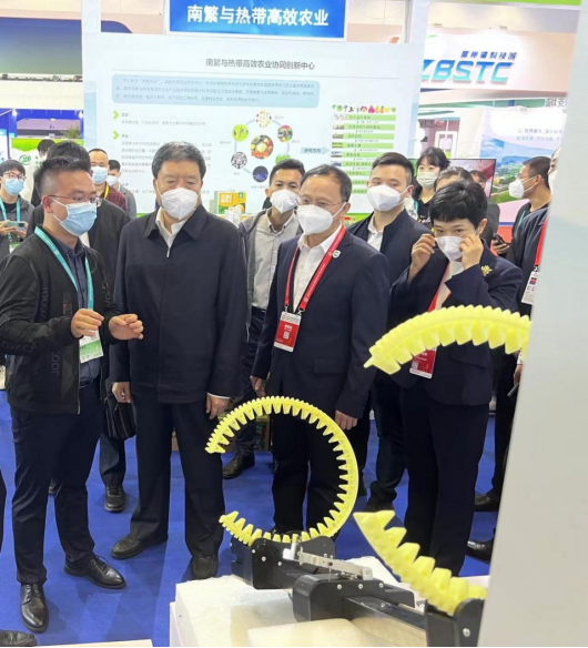 展会期间,学校党委书记符宣国,副校长曹宪忠一同前往团队展位视察,符书记对团队工作给予肯定,希望团队能够发挥自身优势,积极推动科技成果转化,让智能化割胶机更好地服务胶农。