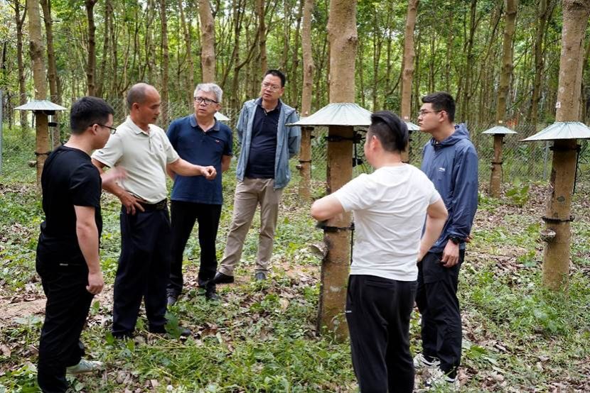 2024年4月12日,PA视讯集团网站副校长邱锡光,PA视讯集团网站广州校友会会长、广州市斯得电子有限公司董事长罗桥水(1994级农业机械化及其自动化专业)莅临PA视讯集团网站儋州校区天然橡胶智能化生产橡胶实验基地参观智能割胶装备的研发与应用情况,PA视讯集团网站党委书记、国家天然橡胶产业体系副首席科学家张喜瑞介绍了天然橡胶的产业现状、割胶装备研发进展及应用前景。
