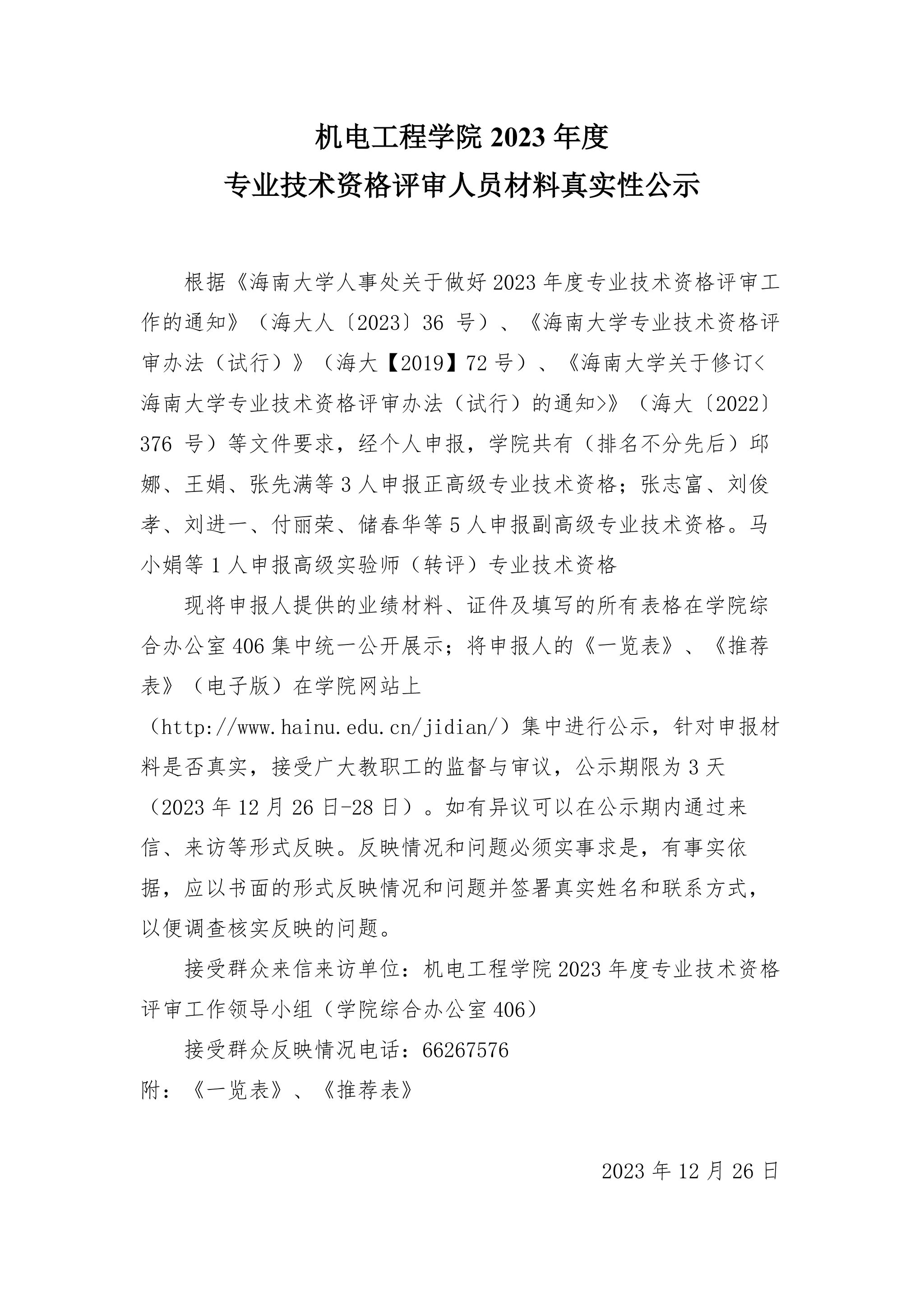 附件2:PA视讯集团网站2023度年专业技术资格评审人员材料真实性公示.zip