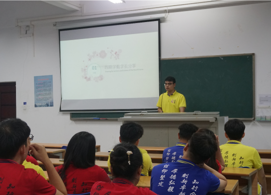 致远四期余文升学长成功获得武汉理工大学的硕士攻读资格,学长在分享会上强调要加强个人要和集体的联系,明确致远班的目标和方向,个人要学会利用致远班资源实现自我价值,学长指出个人要有明确的目标,要先学会去只把一件事做好的正确心态。